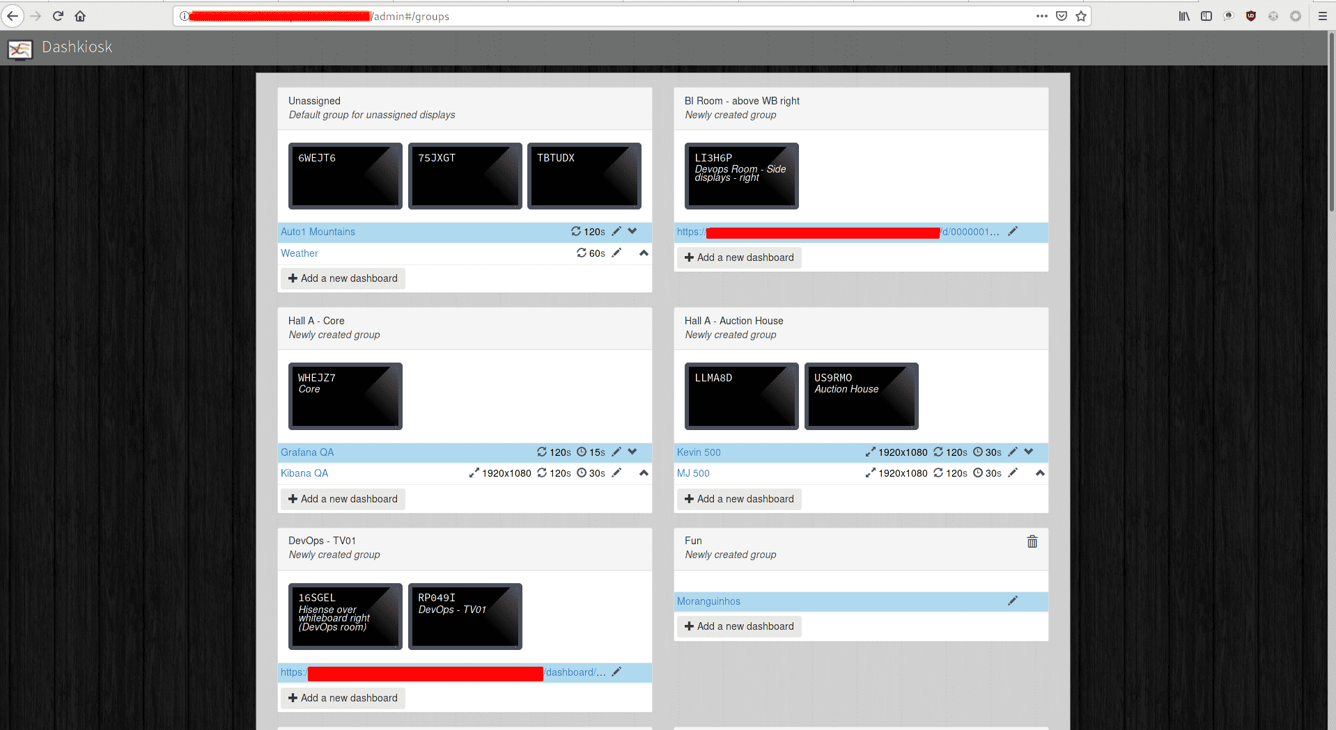 ENTRYPOINT [ "/bin/run" ]Of course when you have many screens it would be inefficient to duplicate app just to open different web URLs in a browser. For that purpose we installed DashKiosk and configured all devices to open the same web link that was a DashKiosk URL. In DashKiosk you manage connected devices to open proper dashboards URLs.