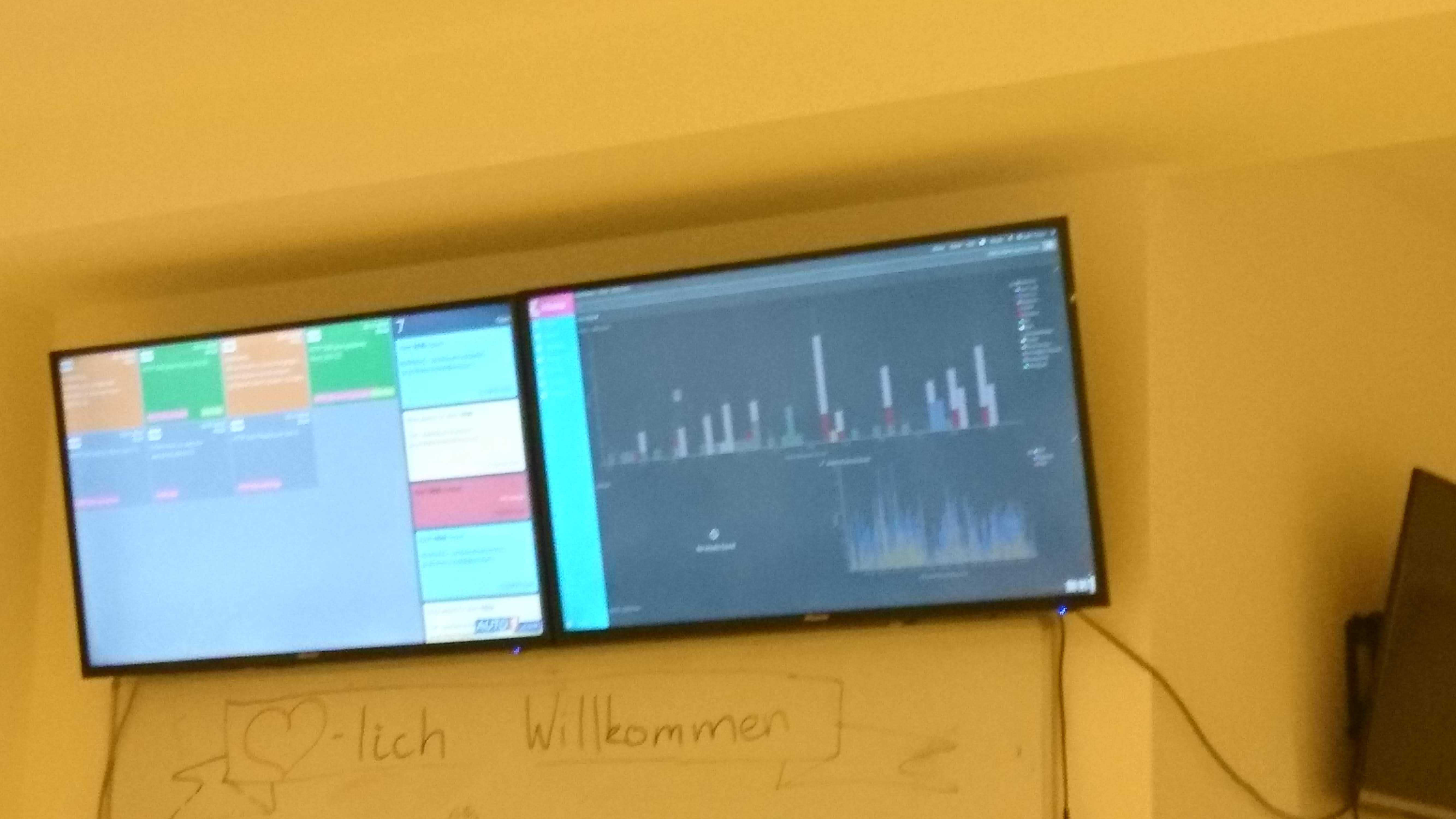 To have visual alerting we watch dashboards powered by Grafana, Kibana and OpsGenie on big TV screens hanging on the walls where we sit. For OpsGenie we use this dashboard with custom modifications.